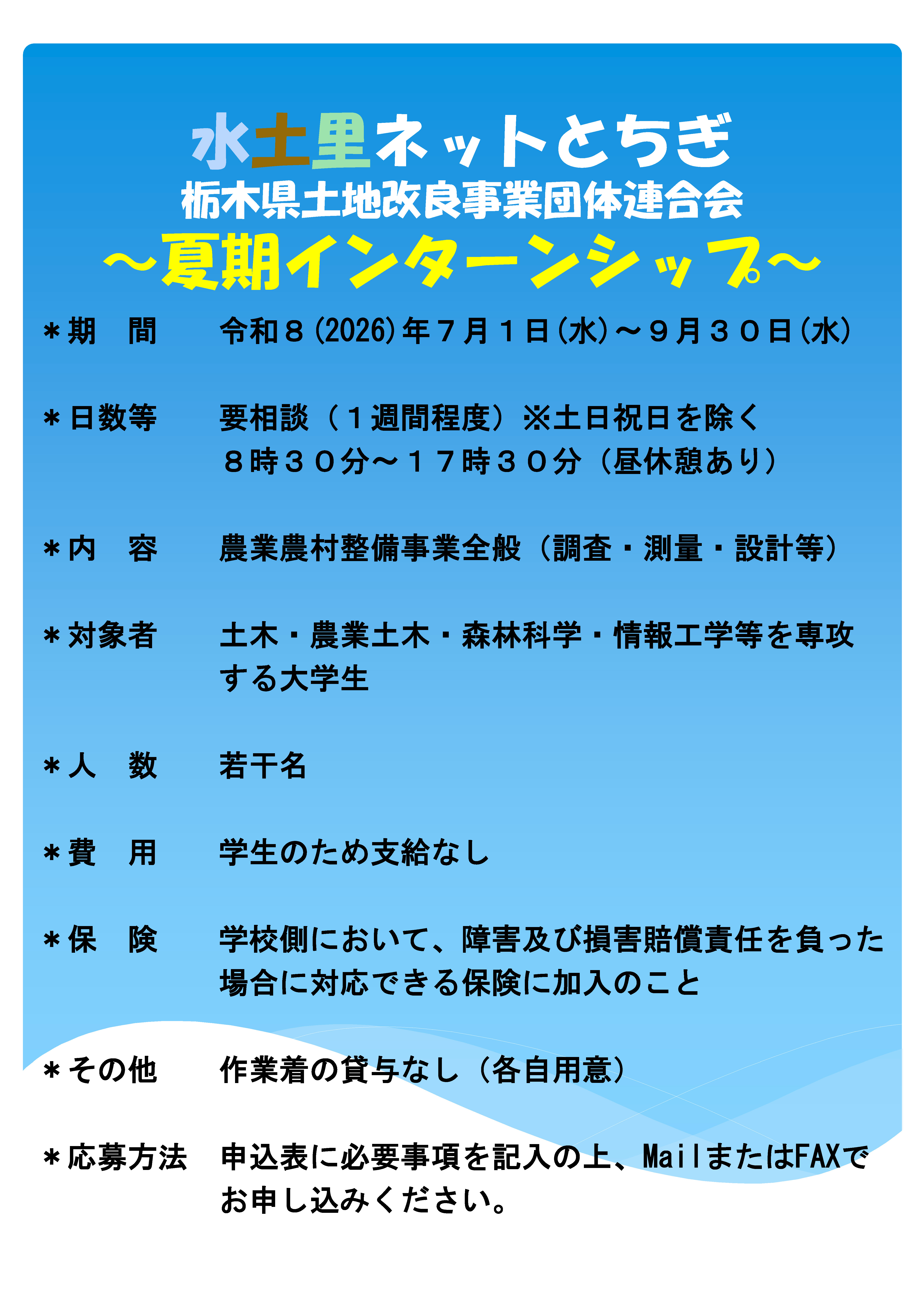トップ > 行事・お知らせ > 【募集中!】令和8年度夏期インターンシップ